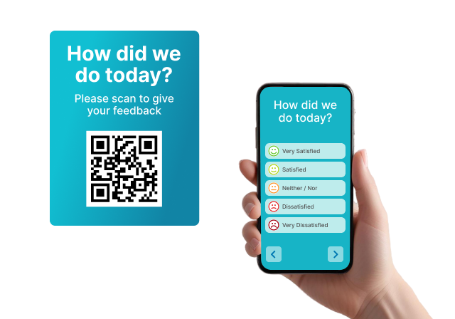 Customers can quickly scan a QR code or enter a short URL to leave feedback at key touchpoints.